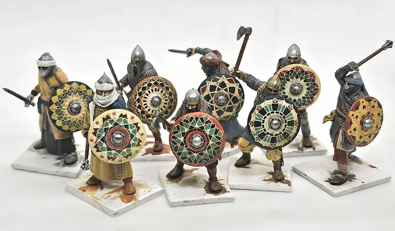 Product code RD 24 is a high-resolution waterslide transfer sheet featuring 16 unique designs for 12-13th century Muslim shields.